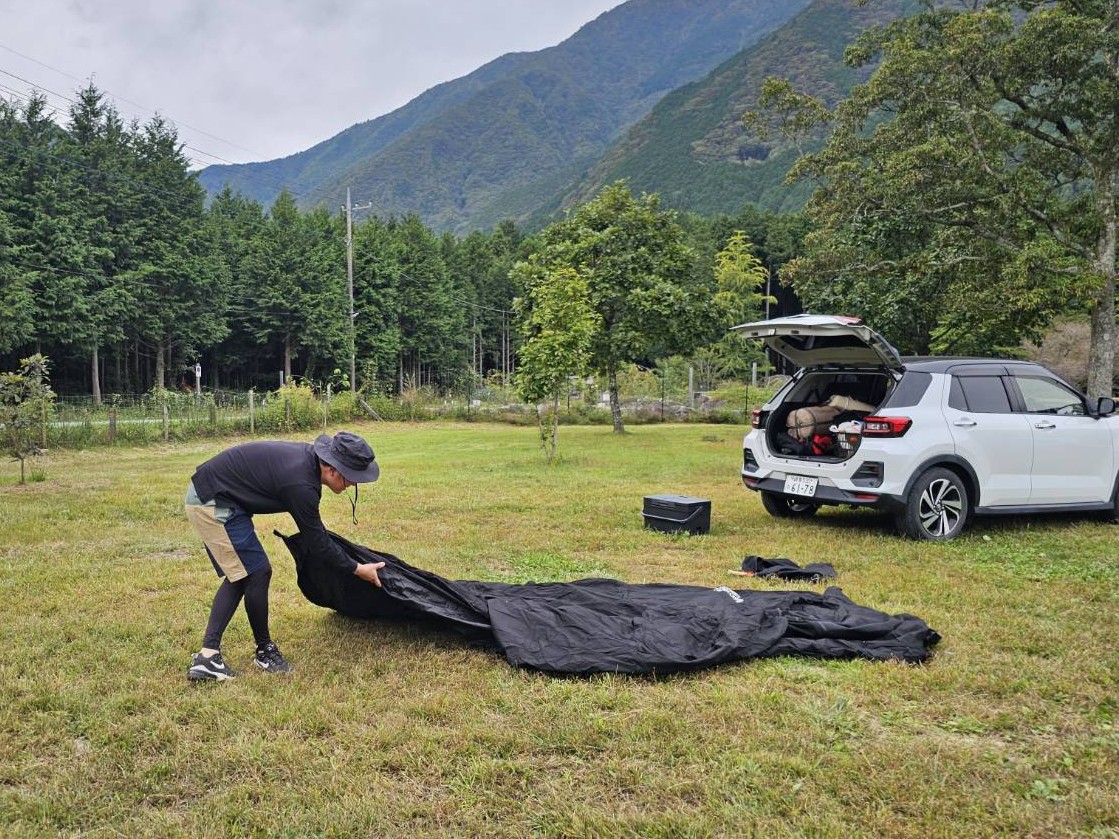 テント設営に悪戦苦闘しながらも、そのハプニングすら楽しむ精神!