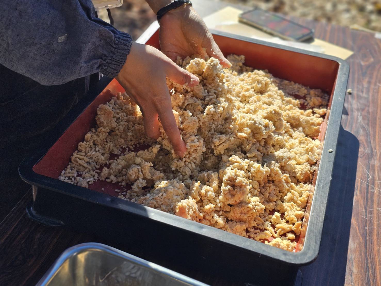 手で混ぜたりしているうちに、