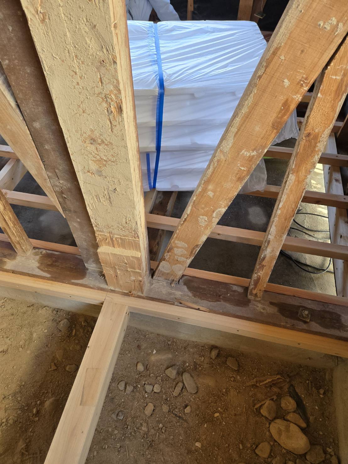 なぜか土台に穴をあけて筋かいを埋め込む