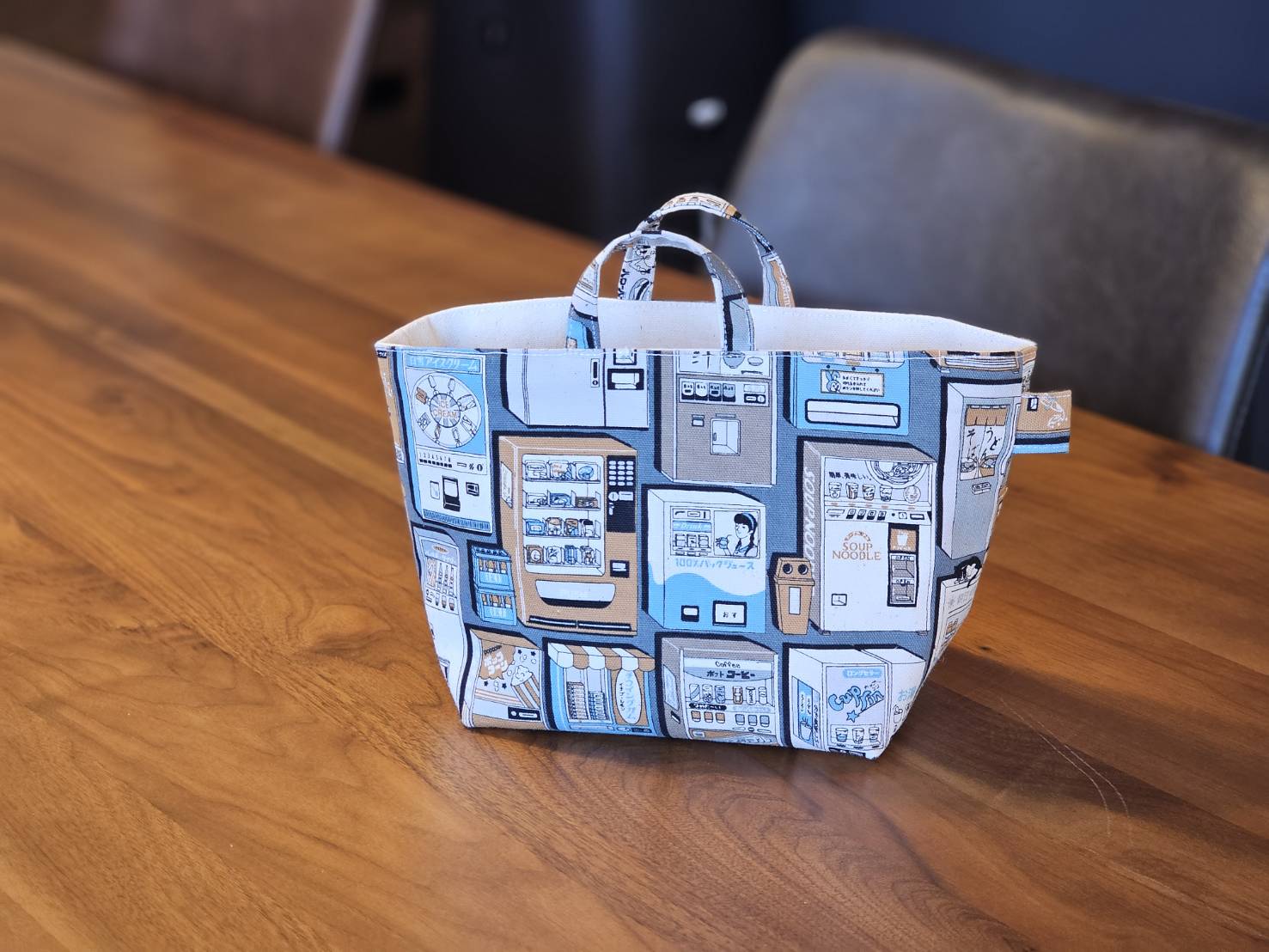 レトロな自販機柄の生地。