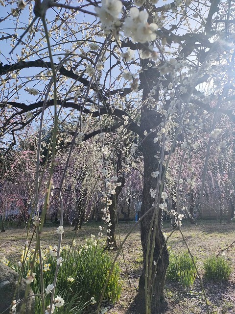 梅は満開を迎え、白にピンクに咲き誇っていました。