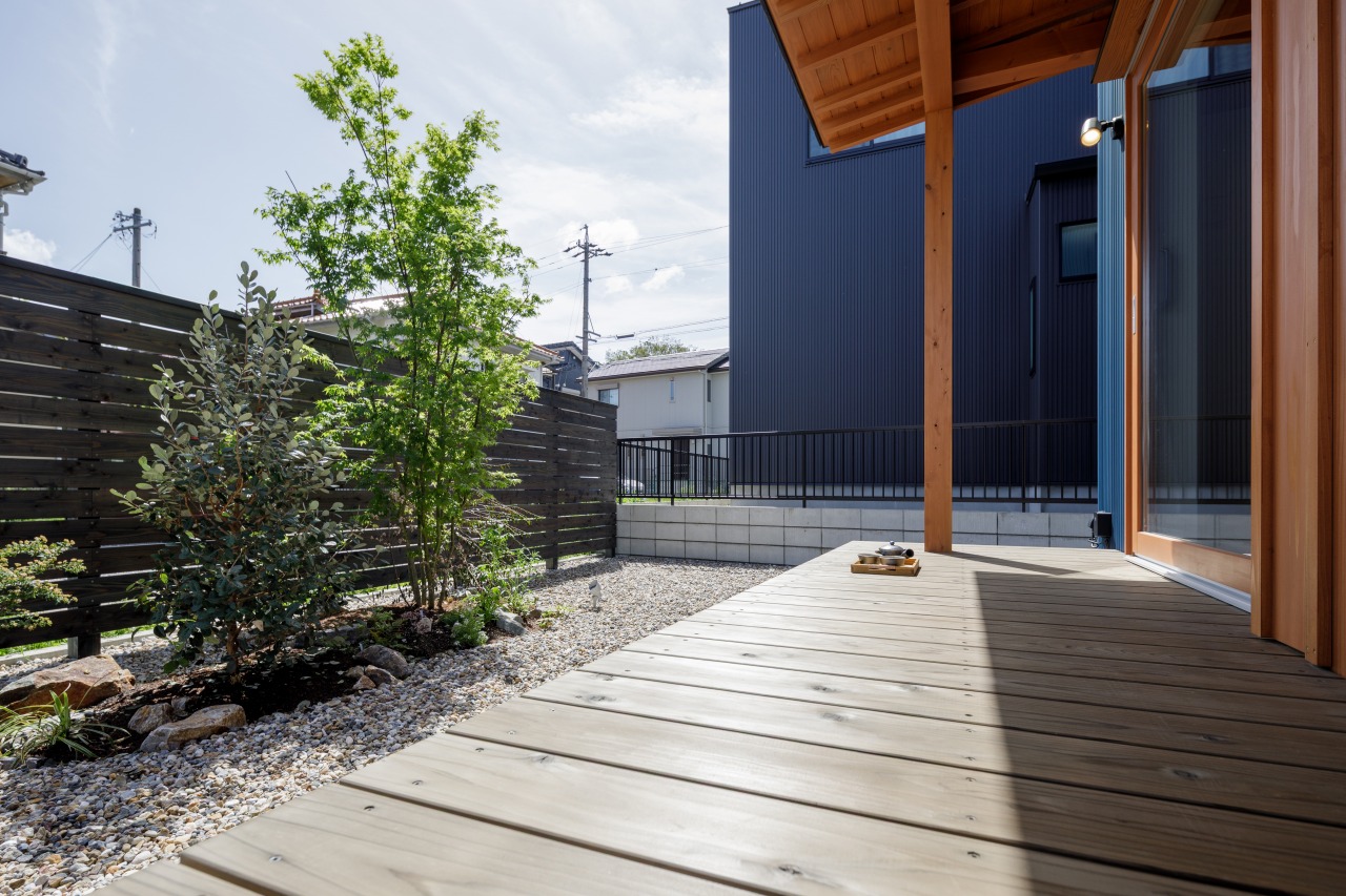 さらに庭にはウッドフェンスを設けて、外からの視線をやわらかく遮ることで、プライベートな時間も大切にできるつくりに。