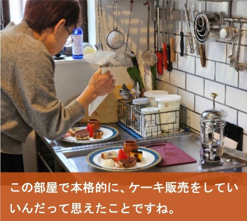 私がこの部屋でいよいよ本格的に、ケーキ販売をしていいんだって思えたところからですね。別にケーキ屋さんになりたかったわけじゃないんだけど、みんなからの声で自分がこう後押ししてもらって、ただの夢に終わらずに、形になった。