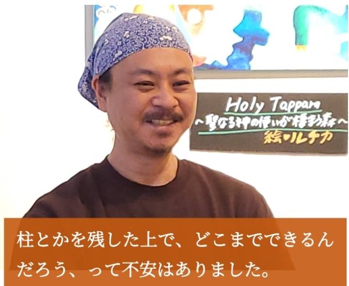まずは、本当にできるのか、ということ。店を改装するっていうことで、柱とか構造躯体を残した上で、新しい間取りを作ったり、変えていくところが、どういう風にできていくんだろう、という不安はありました。