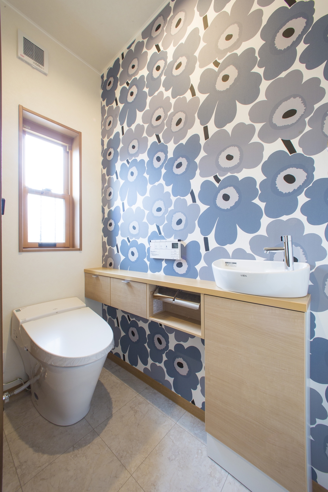 トイレにマリメッコ柄の壁紙をお願いしました。