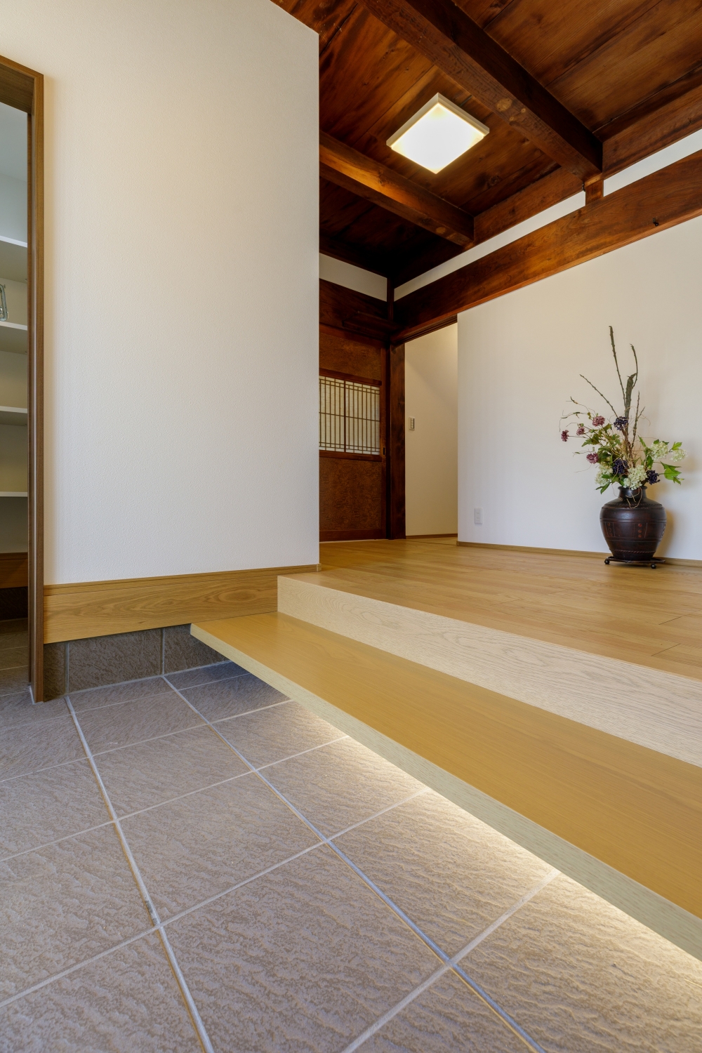 小上がりの下に靴をしまえるように造作をしてもらったので、玄関がスッキリ